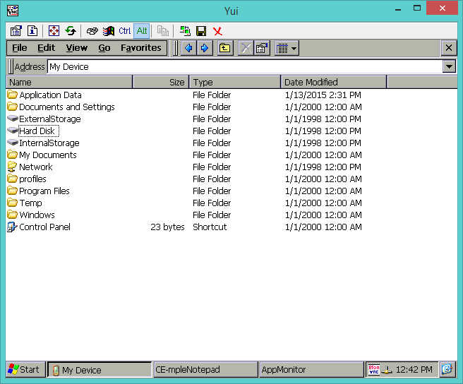 ExternalStorage and Hard Disk are both removable drives, with the OS installed on the InternalStorage; the equivalent filepath for this Windows CE would be:
